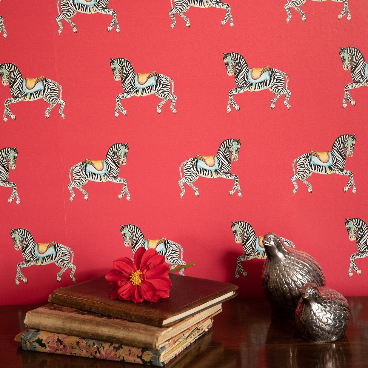 Bring character and style to your interiors with Zebra Parade Wallpaper, a bold design available in two striking colourways — Raspberry and Moroccan Ochre. This premium wallpaper showcases eye-catching zebra motifs that add chic sophistication and a sense of playful wonder to any room.